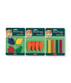 Rabbits and rodents have teeth which grow continuously, thus they have the need to use them regularly. With these agreeable, soft, colourful pieces of fir wood, possibly hung inside the cage using a metal wire or string, this need is resolved by transforming it into a game. The wood gnaws are coloured with non-toxic paint for the animal’s complete safety.